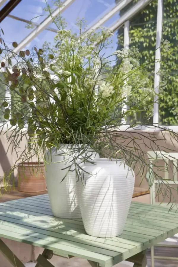 The Willow vase will make a great impression with its beautiful, bulky curves. Its woven pattern that is reminiscent of old wickerwork is accentuated by the deep glazed surface.