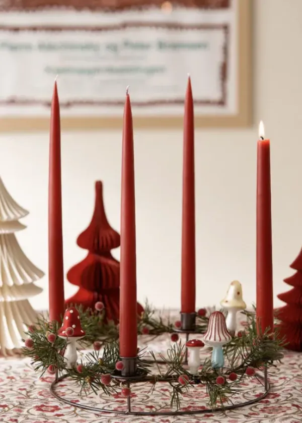 Tähän kynttiläjalkaan sopivat perinteiset kruunukynttilät. Voit myös koristella kynttilänjalan erilaisilla jouluisilla koristeilla, havuilla tms.