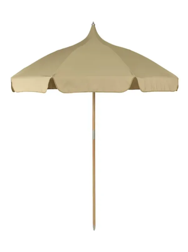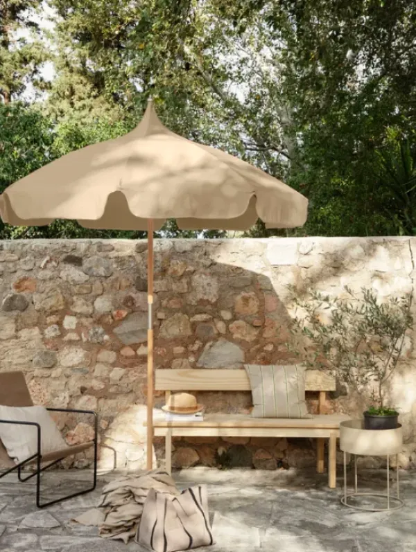 Ferm Livingin laadukas ulkokäyttöön tarkoitettu aurinkovarjo. Puutarhaan, terassille, rannalle,… Varjo tulee helposti mukaan otettavassa kassissa.