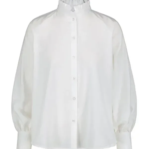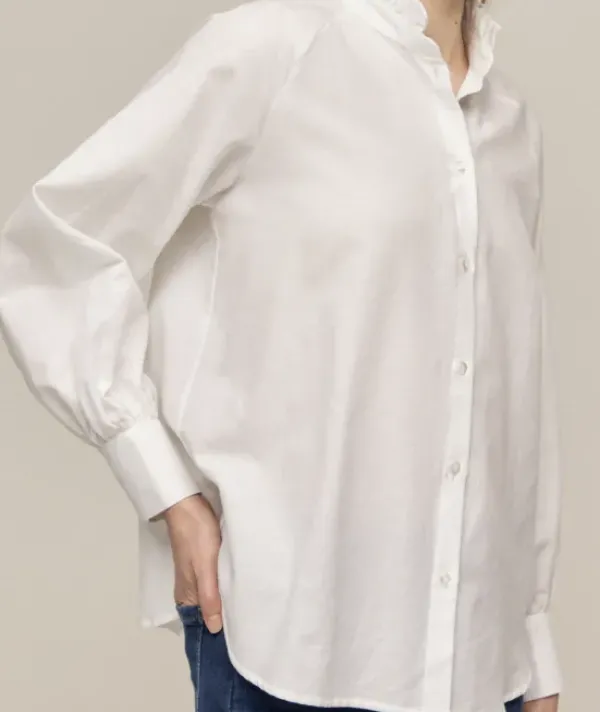 Gauhar Helsingin raikas valkoinen puuvillapaita, jossa on klassinen siluetti ja pienet pystykaulukset frillalla. Pitkät hihat ja nappikiinnitys. Suunniteltu jokapäiväiseen käyttöön, sillä se sopii täydellisesti farkkujen, housujen tai suosikkihameesi kanssa.