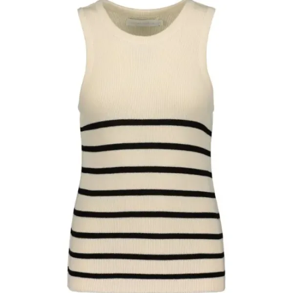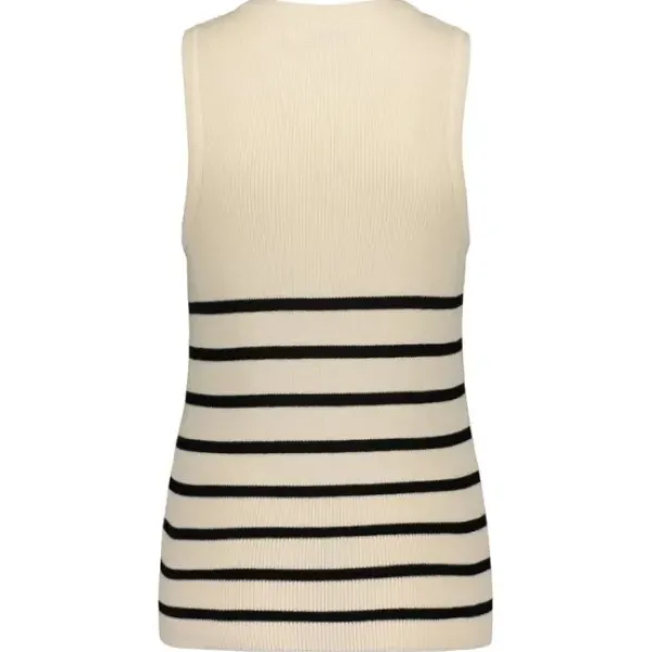 Gauhar Helsingin puuvillainen neuletoppi sopii ihanasti jakun tai farkkutakin alle. Kesällä ihana sellaisenaan. Kiva slim fit malli. Luomupuuvillaa. Mustia raitoja off-white pohjalla.