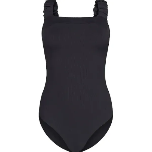 Valmistettu laadukkaasta, premium kankaasta, jossa miellyttävä ja tukeva jousto. Naiselliset röyhelö olkaimet, ajaton siluetti. Pue uimapuku hameen tai shortsien kanssa, ja sinulla on kaunis toppi kaupungille tai kesälounaalle.