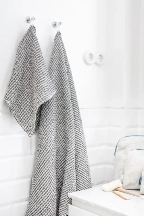 Sävyvaihtoehtoina valkoinen, vaaleanharmaa ja tummanharmaa. Samaa sarjaa saatavilla myös käsipyyhkeinä.
