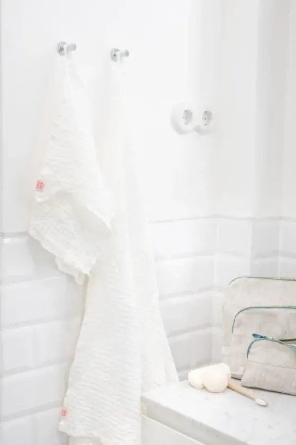 Sävyvaihtoehtoina valkoinen, vaaleanharmaa ja tummanharmaa. Samaa sarjaa saatavilla myös käsipyyhkeinä.