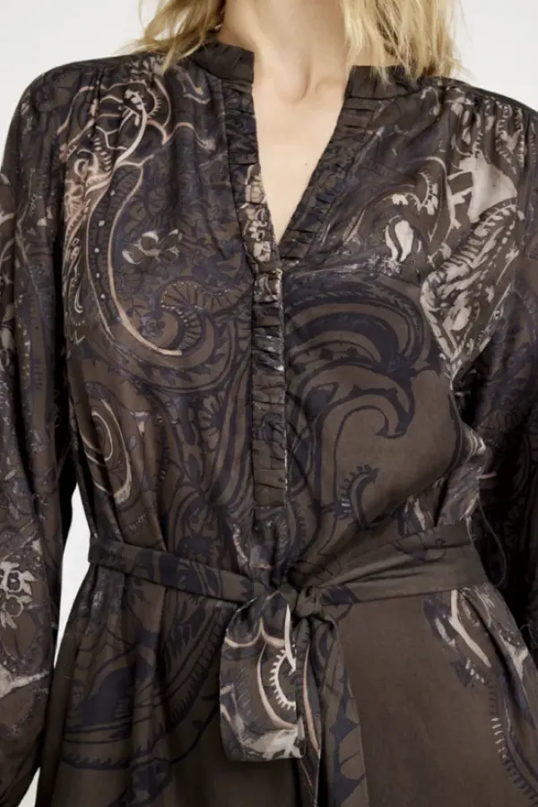 Gustavin näyttävässä Anika mekossa on kaunis kuviointi. Kuin taideteos. Korosta vyötäröä mekkoon kuuluvalla vyöllä tai kokeile käyttää leveämpää kenkiin sopivaa nahkavyötä. Rento malli arkeen ja juhlaan. Materiaalina kauniisti laskeutuva viskoosin ja cupron sekoite.