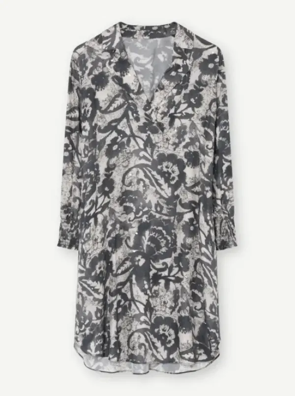 Tässä mekossa kaunis kukkapainatus. Kaunis kuin vesiväritaideteos.Kaunis murrettu sävymaailma syksyyn. Malli on helppo ja kauniisti laskeutuva. Taskut ihastuttavat aina ja V-pääntie sirouttaa naisellista kokonaisuutta.
