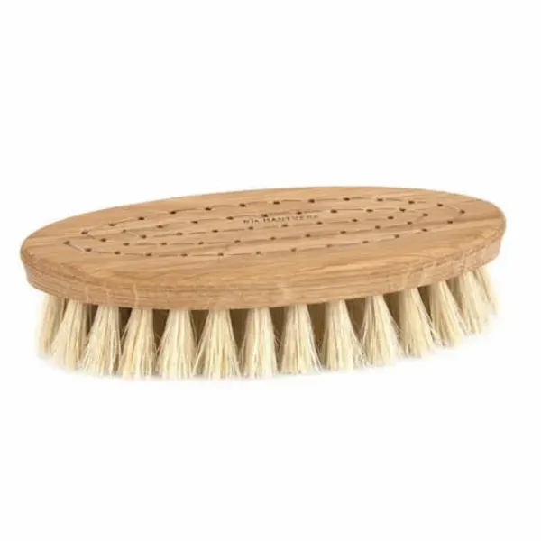 Harjasta saa hyvän otteen. Hevosen jouhi on täydellinen materiaali kylpyharjoihin sillä se on pehmeää, joustavaa ja kestävää. Yhdessä hyvän saippuan kanssa harja pesee erittäin hyvin. Anna kuivua harjasten osoittaen alapäin, jolloin vesi valuu pois puuosasta. Koko 4 x 6 x 16cm.