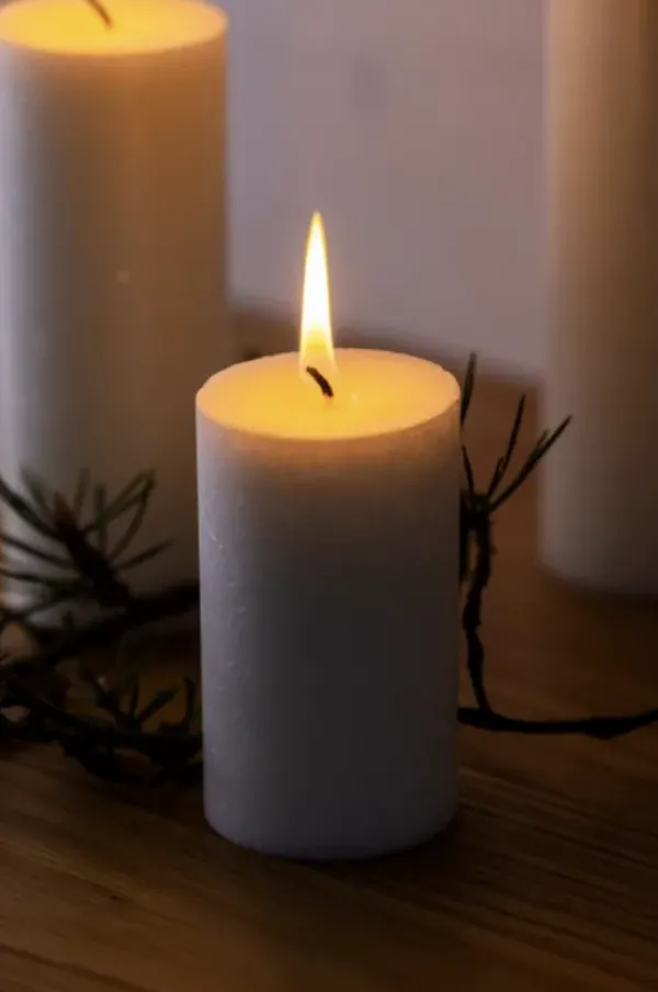Tanskalaisen KunstIndustrienin laadukas alttarikynttilä kivalla marmoripinnalla. Tässä vegaanisessa kynttilässä on käytetty materiaalina oliiviöljyä.