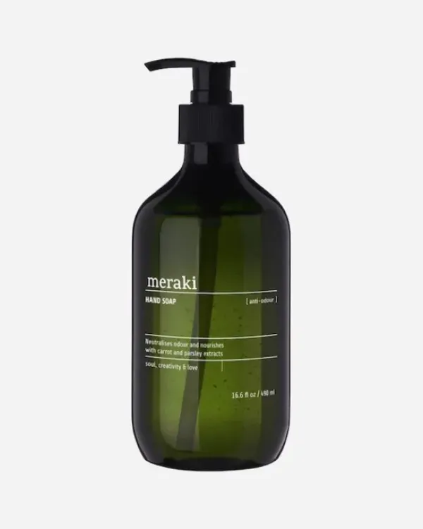 Tanskalaisen Merakin uusi käsisaippua, jolla poistat vahvat tuoksut käsistä. Hento kukkaistuoksu. Ecocert sertifioitua luonnonkosmetiikkaa.