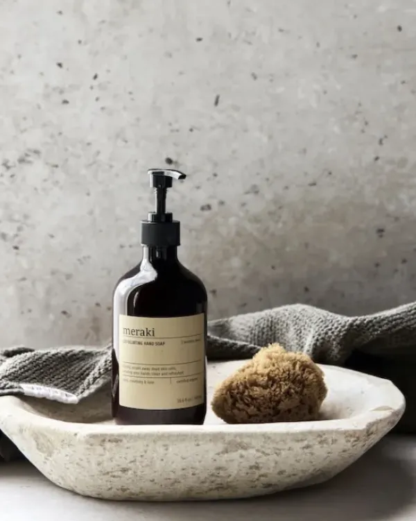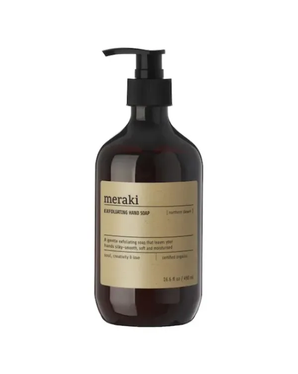 Tanskalaisen Merakin tuotteissa on hienot luonnolliset tuoksut. Tämä kuoriva pumppusaippua on etenkin talviajan pelastus! Se kuorii hellästi kuivaa ihoa, jonka jälkeen käsirasva imeytyy ihanasti käsiin.