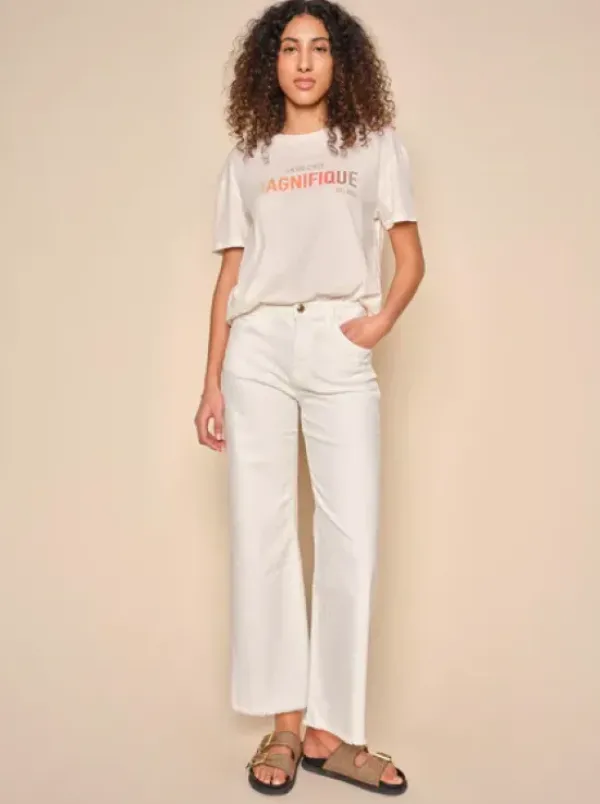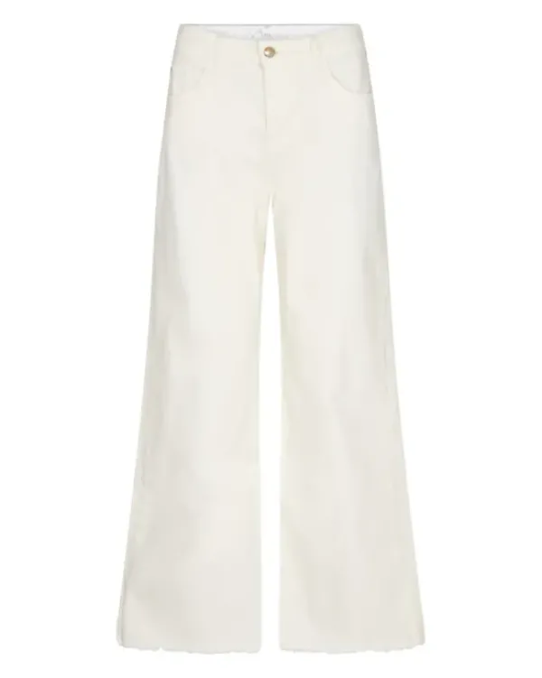 Mos Moshin ihanat valkoiset farkut kesään! Näissä leveälahkeisissa farkuissa on korkea vyötärö ja käsittelemättömät lahkeensuut. Mukana mukavasti stretchiä, joten nämä ovat supermukavat jalassa. Nilkkapituus.