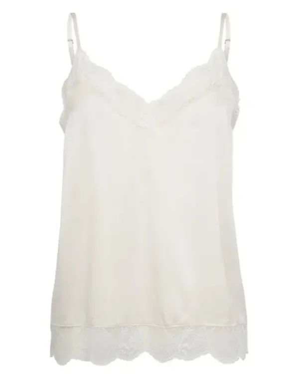 Add a touch of femininity to your look with this exquisite silk singlet, delicately crafted with a touch of stretch for comfort. Adorned with lace details along the neckline and bottom hem. Pair it effortlessly with a tailored blazer and jeans for a sophisticated look or balance with a leather jacket to give it an edgy feel.