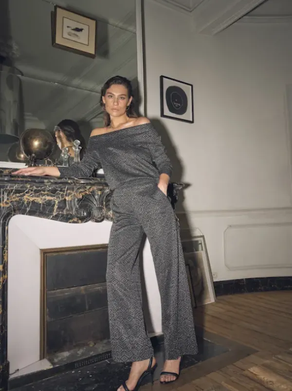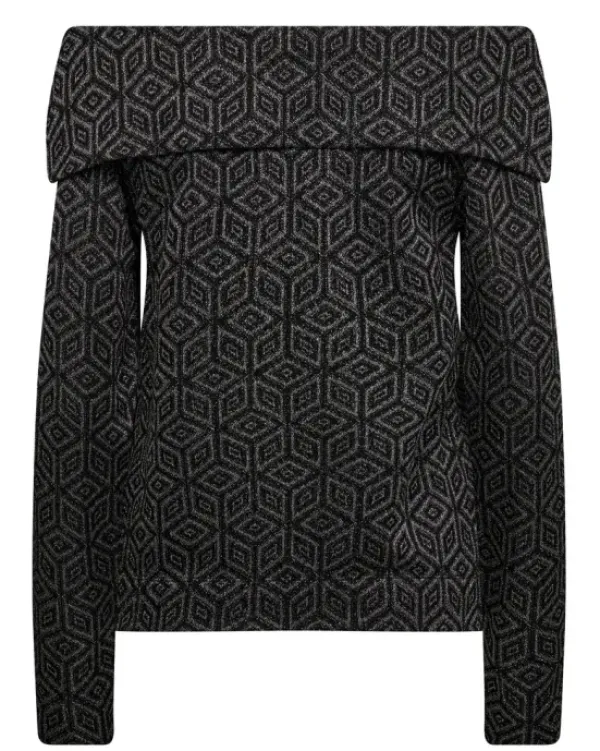 Mos Moshin näyttävä off-shoulder pusero talven juhliin! Kaunis kuviointi ja ripaus glitteriä tuovat tähän puseroon kivan ilmeen.