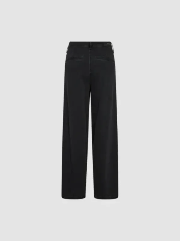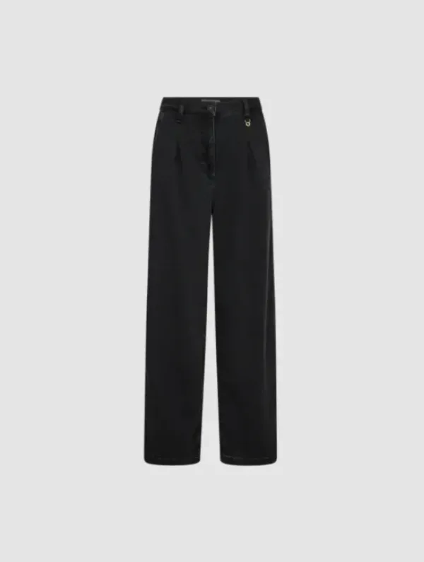 Mos Moshin syysuutta: kivat leveälahkeiset mustat farkut näyttävillä yksityiskohdilla. Mukava pehmeä kangas. Takana piilotaskut. Korkea vyötärö ja pitkät lahkeet.