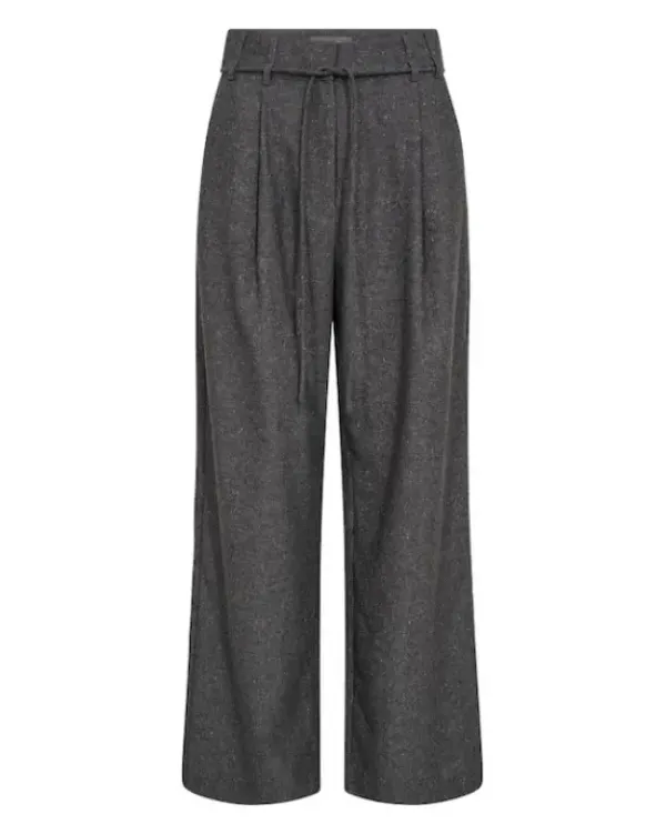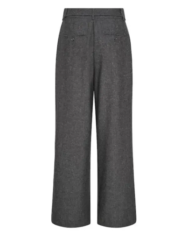 Ihanan rennot suorat housut leveillä lahkeilla ja korkealla vyötäröllä. Pue rennosti collarin kanssa tai muodollisemmin poolon ja korkonilkkureiden kanssa. Ihanan monipuoliset housut syksyyn ja talveen. Materiaalina polyesterin ja villan sekoite.