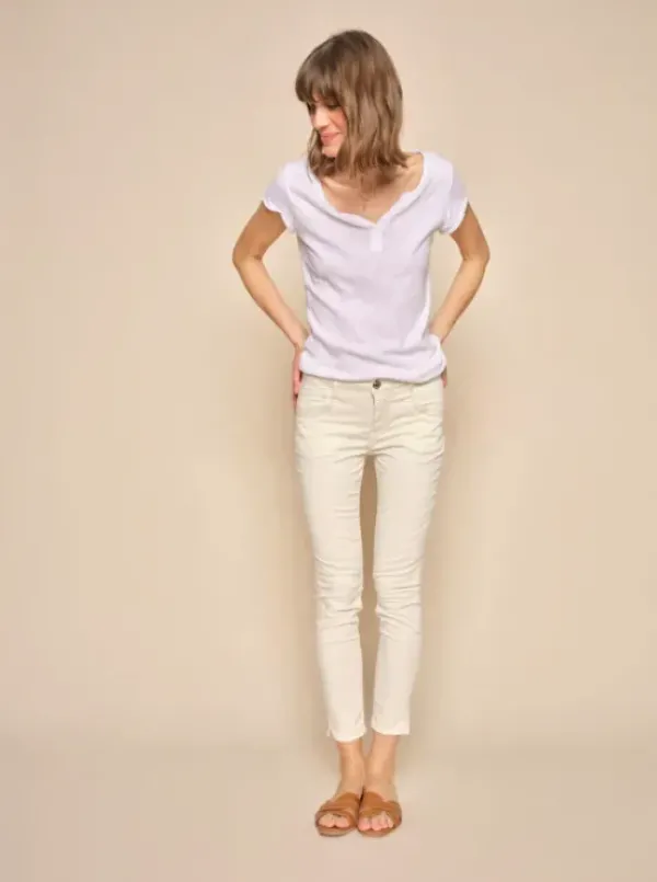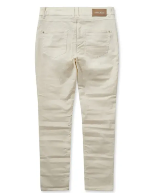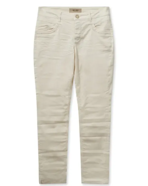 Mos Moshin suositut kapeat housut kauden uudessa luonnonvalkoisessa sävyssä. Keskikorkea vyötärö ja nahkasomisteet takataskuissa. Ihanat oversize paidan ja tennareiden kanssa.
