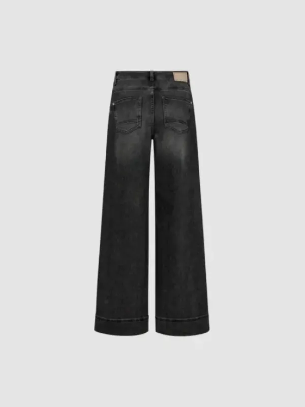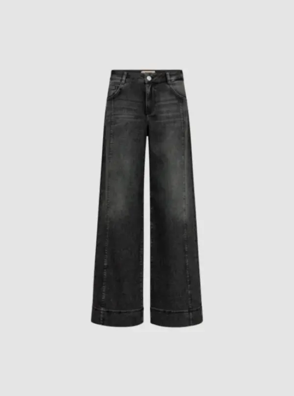 Mos Moshin kauden uutta: leveälahkeiset kulutetun mustat Reem Etty farkut, joissa jujuna tuplasivusauma tuomassa ilmettä. Leveä päärme lahkeissa. Korkea vyötärö. Mukavan pehmeä materiaali.
