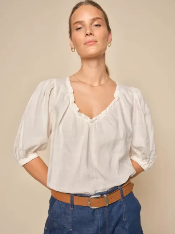 Mos Moshin ihanan rento pellavapaita lyhyillä puhvihihoilla. Yhdistä pellavashortsien tai farkkujen kanssa tilanteen mukaan. Värinä valkoinen. Täydellinen kesäpaita siistiin tai rentoon lookkiin! <3