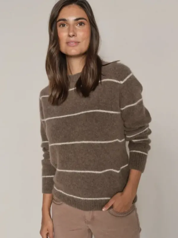 Mos Moshin ajaton raitaneule alpakan ja villan pehmoista sekoitetta. Tämä klassinen neule on kiva farkkujen kanssa tai vaikkapa mekon päällä viileänä päivänä. Kivat ohuet raidat. <3