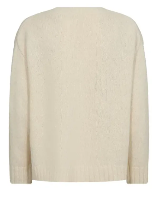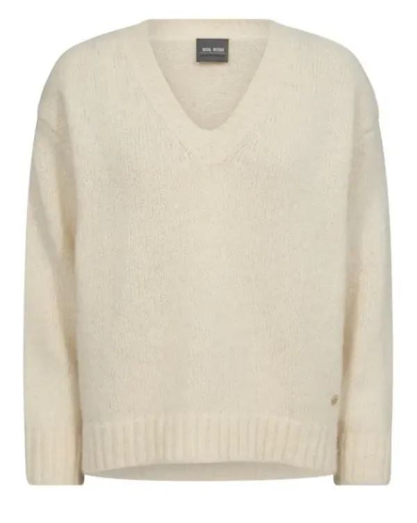 Mos Moshin pehmoinen neule v-kaula-aukolla. Vaatekaapin perusneule, joka on helppo yhdistää monenlaiseen asukokonaisuuteen.