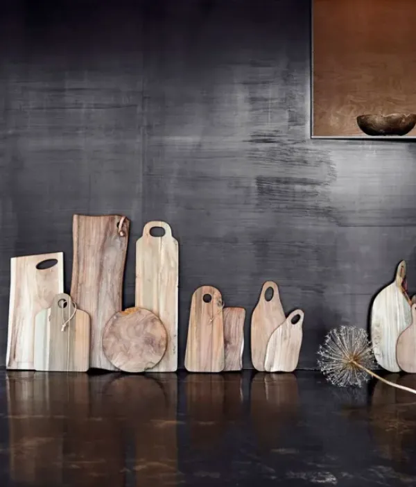 Tanskalaisen Muubsin rosoinen, käsintehty leikkuulauta, joka tuo kivan ilmeen kattaukseen tai keittiöön. Persoonallinen muoto ja rustiikkinen look. Materiaalina kaunis tiikki.