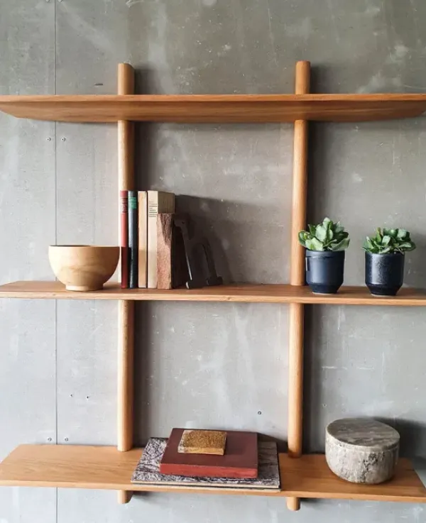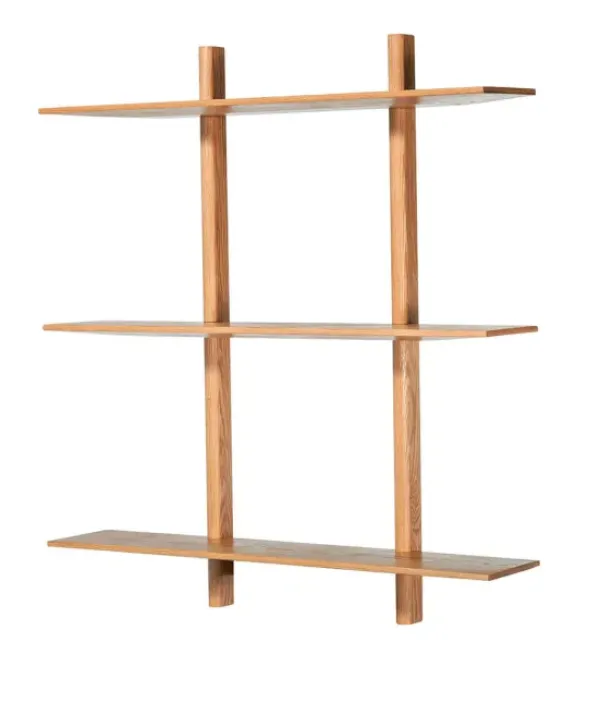 Tanskalaisen Muubsin kaunis seinähyllykkö luonnonvaaleaa tammea.