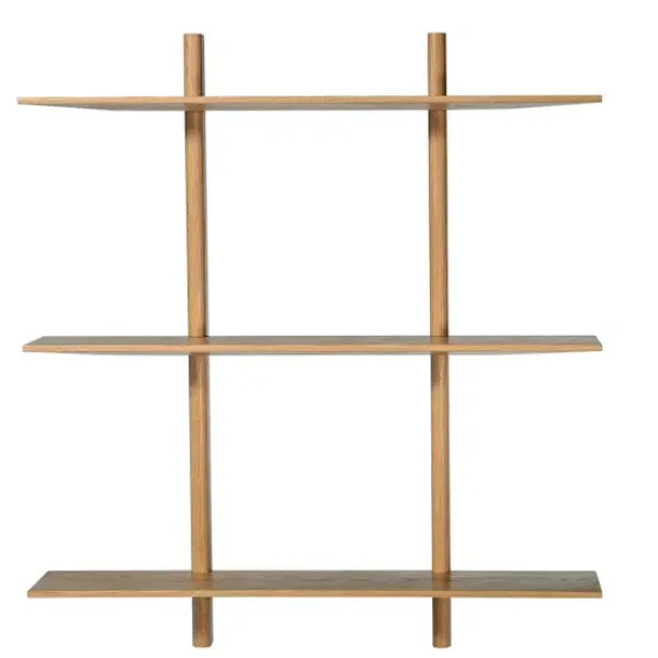 Hyllykössä on 3 hyllyä, joissa on jyrsityt reunat, mikä antaa tammihyllyille ainutlaatuisen ilmeen. Asettele tähän hyllykköön lenppariesineesi keittiössä, olohuoneessa tai vaikkapa eteisessä.