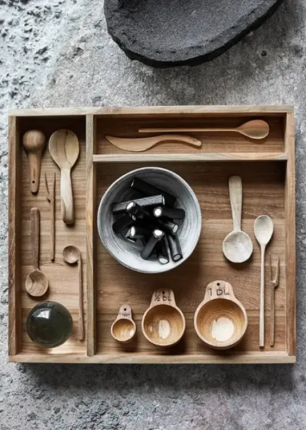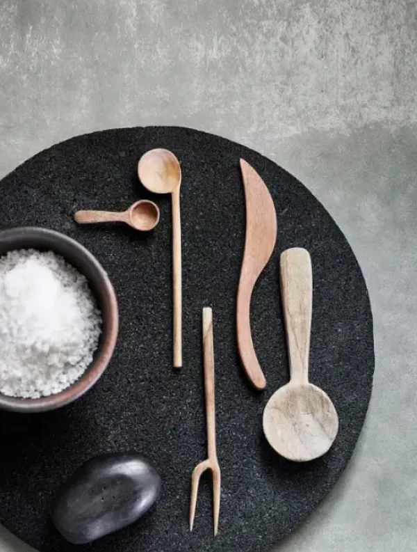 Place the butter knife on the brunch table to break with cold ceramics and let the warm color of the teak butter knife draw the eye and make you think of the perfect imperfections of nature.
