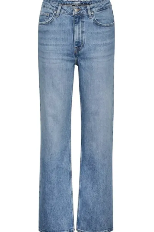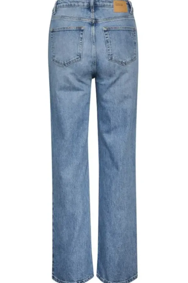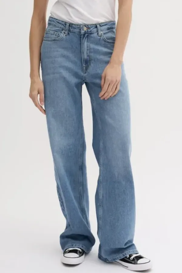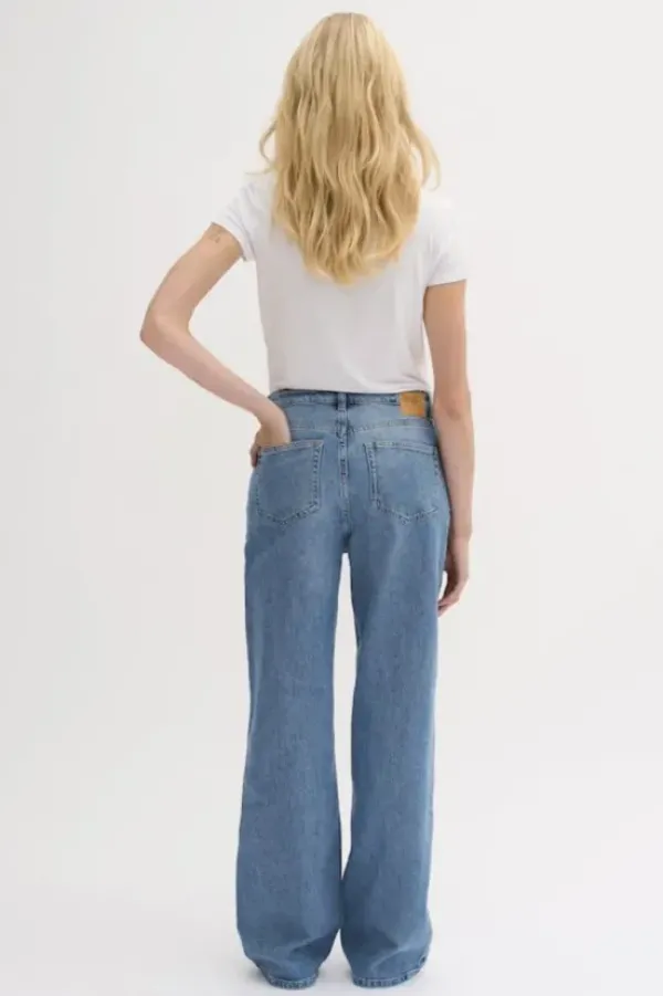5-pocket jeans with a wide fit and high waist. Made in Turkey from BCI Cotton, the jeans have all the apparel of vintage added a bit of stretch for extra comfort. The jeans have a medium blue retro wash.