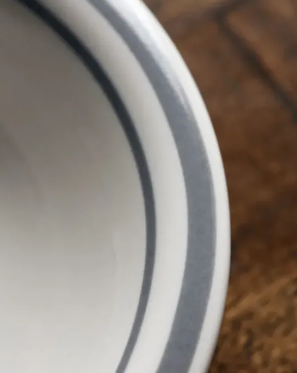 Luo ranskalaista bistro-tunnelmaa kattamalla näillä kauniilla porsliiniastioilla. Astioissa harmaa koristeraidat. Yhdistä valkoisiin lautasliinoihin ja nauti!