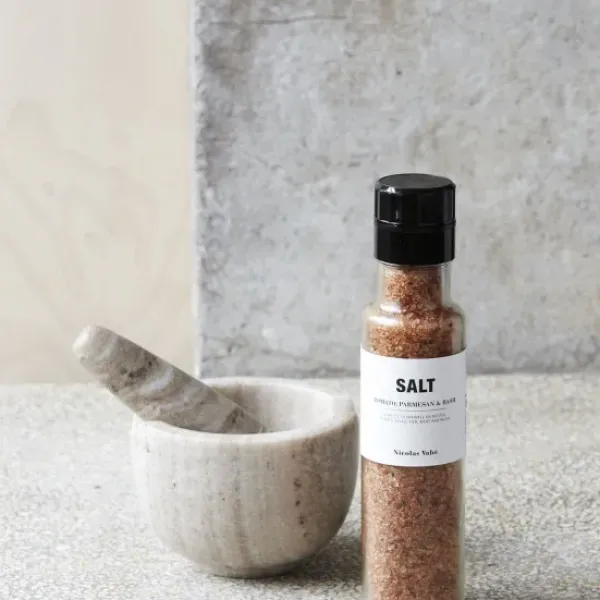 This salt blend from Nicolas Vahé is a delicious combination of salt, tomato, parmesan and basil. When not in use, let the grinder decorate your kitchen counter or dining table. The salt is especially suitable for sprinkling on butter, tomato salad, fish, meat and pasta. The mill comes with a ceramic grinder which gives you finely ground spices. This releases the oils for more aroma and flavour in your dishes.