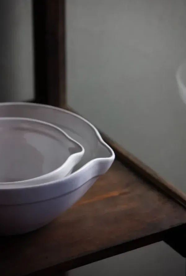 Klassinen Majken kulho kätevällä kaatonokalla. Tämä toimii sekä kokkailuissa että tarjoiluastiana. Kaksi kokoa.