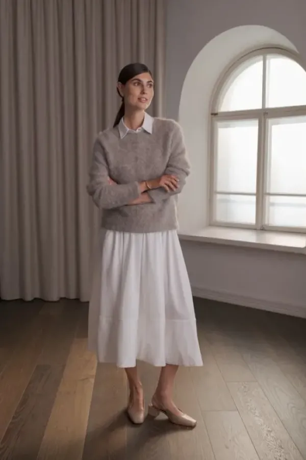 Pitkähihaisessa neuleessa yhdistyvät elegantti muotoilu ja rento malli, tehden neuleesta ihanteellisen valinnan päivittäiseen käyttöön. Pyöreä pääntie ja raglanhihojen huolellinen muotoilu takaavat erinomaisen istuvuuden. Kapeat neuloskäänteet hihansuissa ja helmassa viimeistelevät huolitellun tyylin.