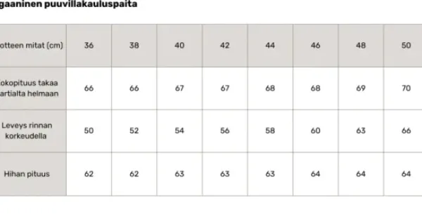 | Size | 34, 36, 38, 40, 42, 44, 46, 48 |