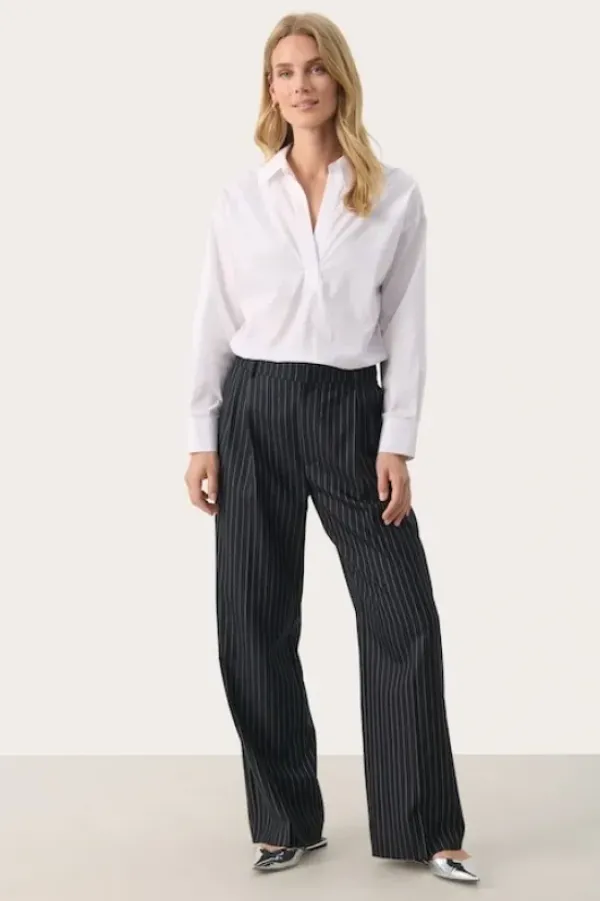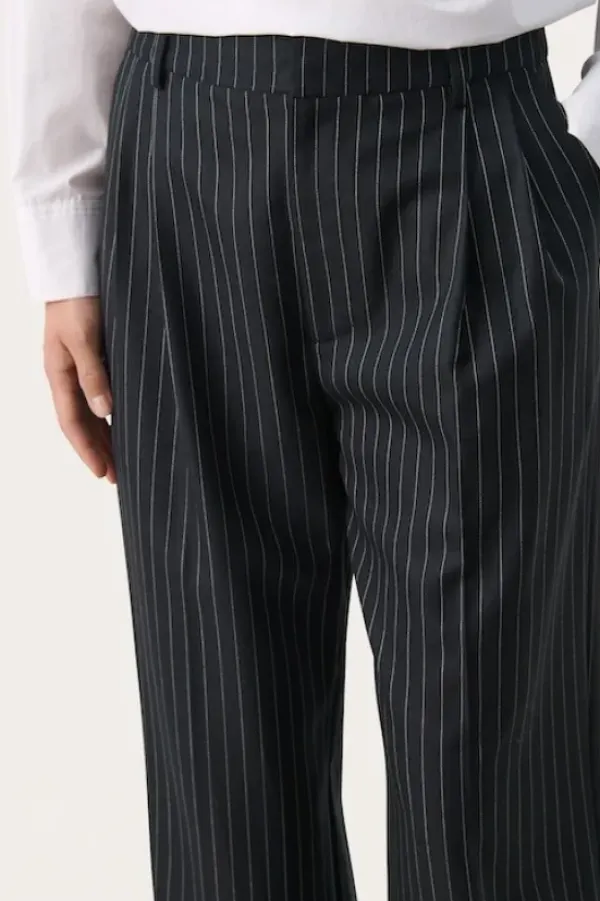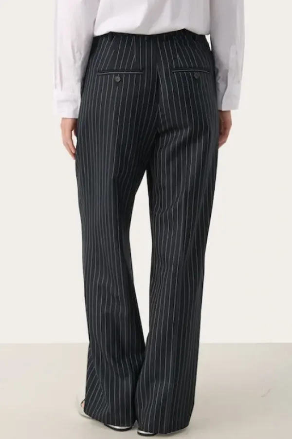 Part Twon siistit, rennot suorat housut toimistolle ja kaupungille. Klassinen malli suorilla lahkeilla. Vyölenkit ja taskut sivusaumoissa. Täyspitkät lahkeet ja kesikorkea vyötärö. Mukana villaa, joten nämä ovat ihanan pehmeät housujen syksyn ja talven siistimpään menoon.
