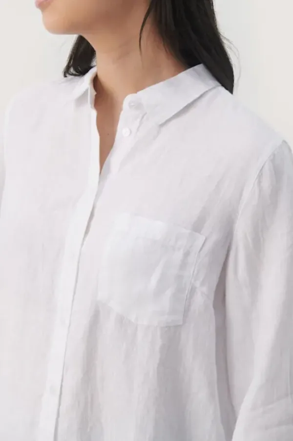 Part Twon suosittu pellavapaitis vajaamittaisilla hihoilla. Voit pitää hihat suorina tai kääriä ne ja kiinnittää tampeilla lyhyemmiksi.