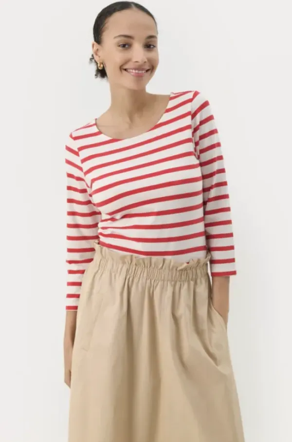 Part Twon raikas raidallinen trikoopaita 3/4-pituisilla hihoilla. Klassinen slim fit malli, joka on helppo pukea esim. neuleen alle. Kesällä ihana sellaisenaan shortsien tai pellavahousujen kanssa.