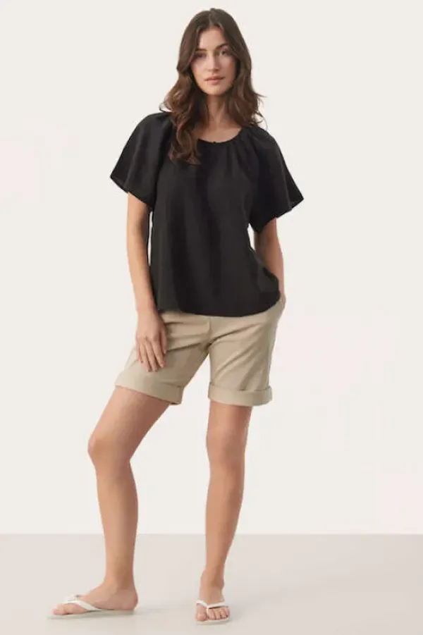 Part Twon kaunis pellavapaita kesään. Rento malli, jossa lyhyet hihat ja edessä kauluksessa nappi. Tämä on helppo yhdistää farkkujen, shortsien tai kesäisen hameen kanssa.