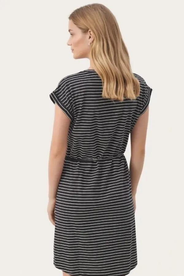 Part Twon suosikkimekko vuosien takaa nyt uudessa raitakuosissa. Kiva trikoomekko kesäiseen päivään. Lyhyet hihat, ja solmittava vyö vyötäröllä.