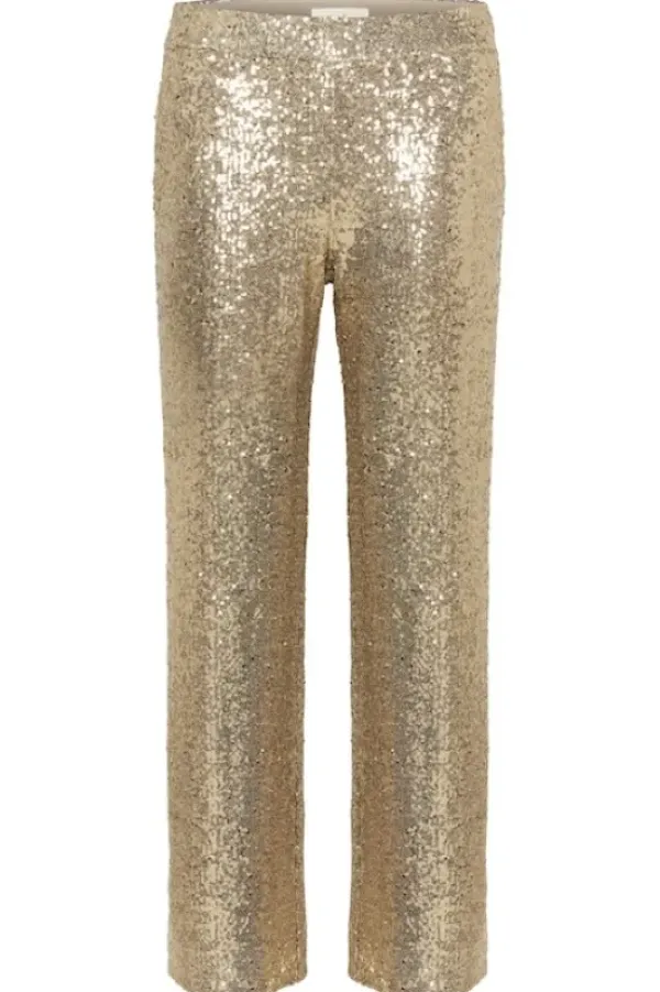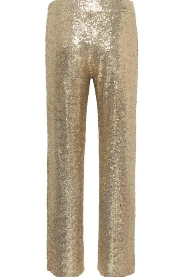 Part Twon näyttävät kimaltavat bilehousut kullan sävyisillä paljeteilla! Vyötäröllä leveä kuminauha, suorat lahkeet. Taskut sivulla.
