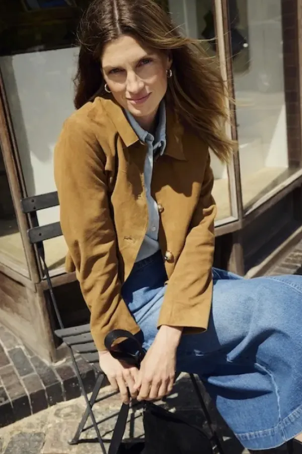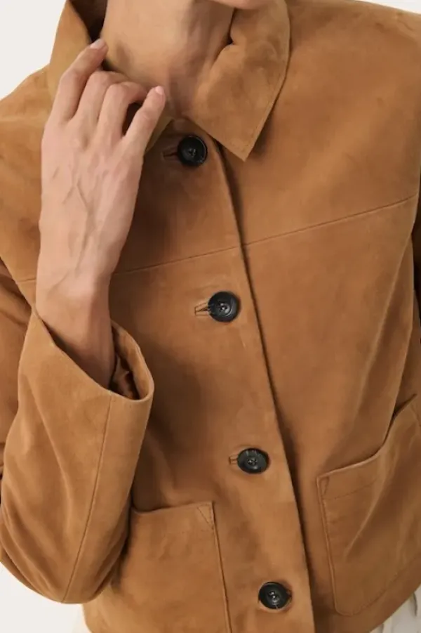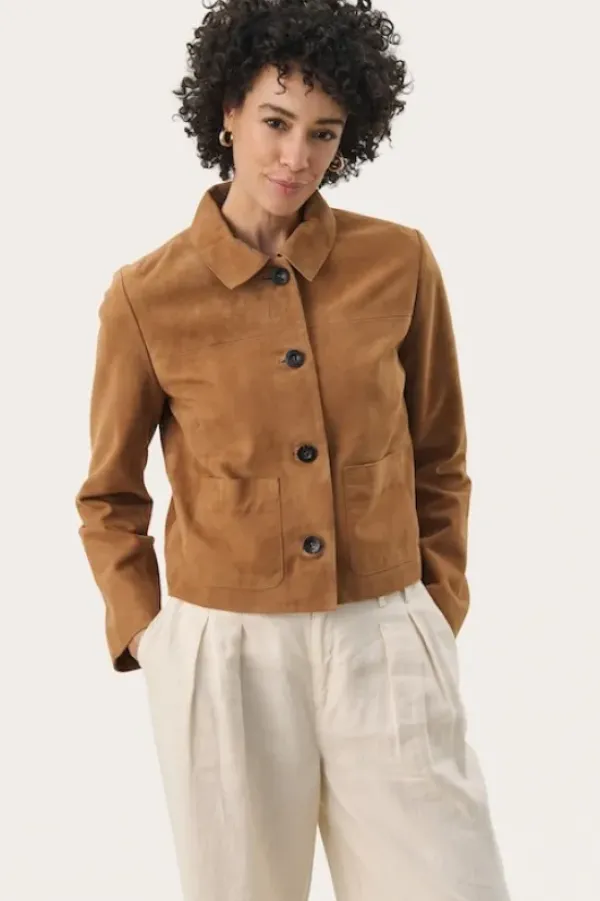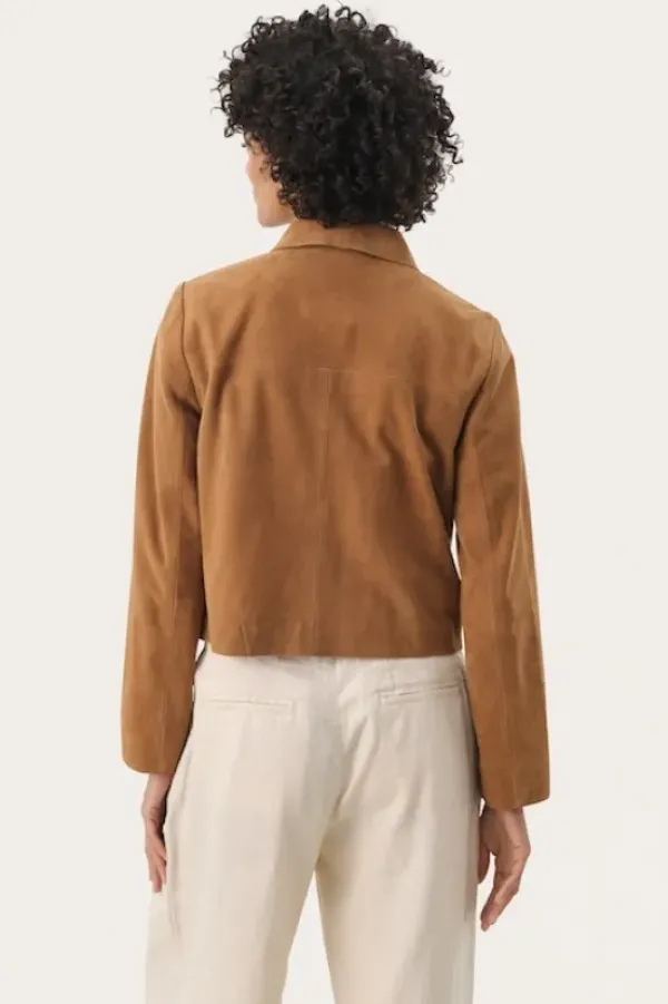 Part Twon superkaunis lyhyt mokkatakki. Tämä takki toimii keväällä myös jakkuna joko hameen tai housujen kanssa. Ihanan pehmeää mokkanahkaa! Lyhyt malli, jossa edessä pienet taskut. Paitiskaulukset.