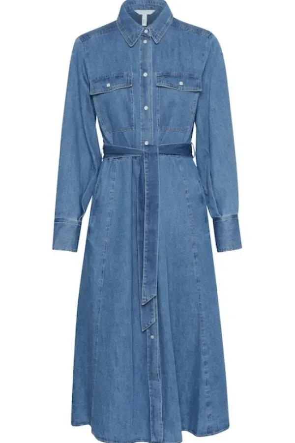 Part Twon uutuus: kiva leveähelmainen farkkumekko, jossa edessä nappikiinnitys. Mukana farkkukankaasta vyö. Voit myös yhdistää nahkavyön kanssa kivan kokonaisuuden.