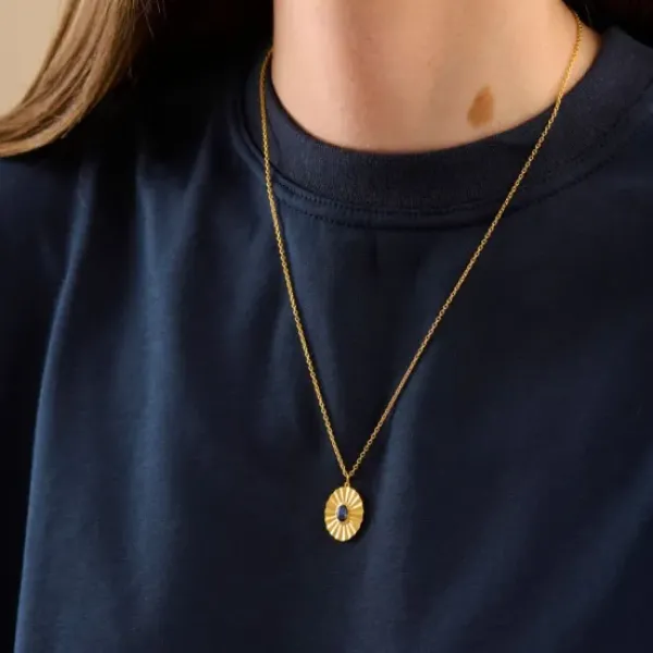 Syksyn kauniista sävyistä inspiraationsa saanut kaulakoru, jossa korukivenä sininen rainbow moonstone. Säädettävä pituus.
