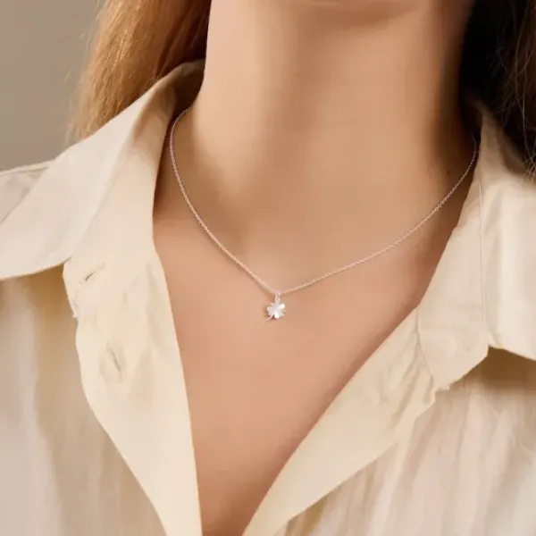 Kaunis hopeinen kaulakoru, jossa onnea tuova herkkä apila amulettina. Kaunis ajatuslahja läheiselle.