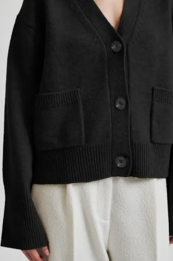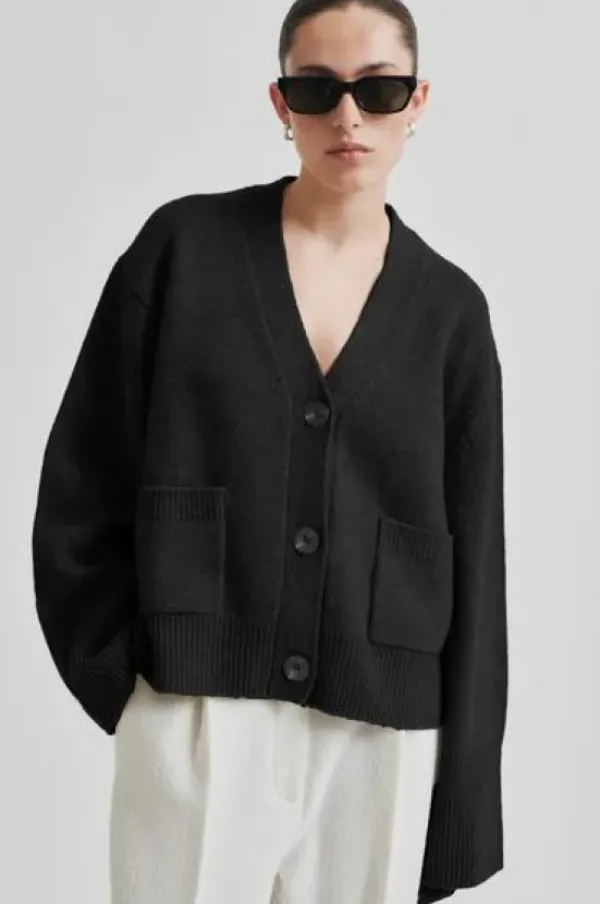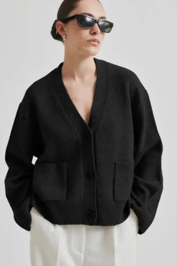 Second Femalen rento neuletakki, jossa ilmettä tuomassa leveät resorit ja leveät hihat. Edessä kaksi taskua. Mukava laatikkomalli, joka on helppo yhdistää farkkujen, mekkojen ja suorien housujen kanssa.