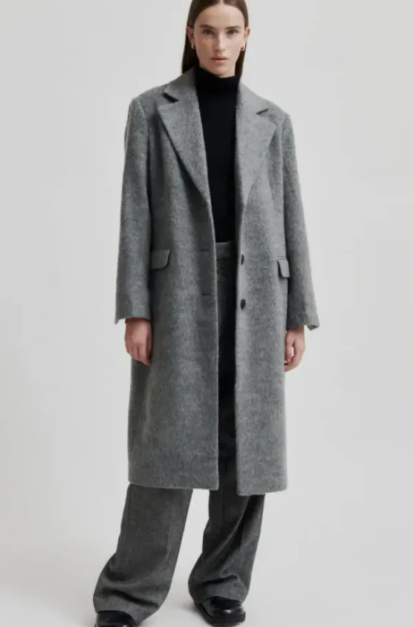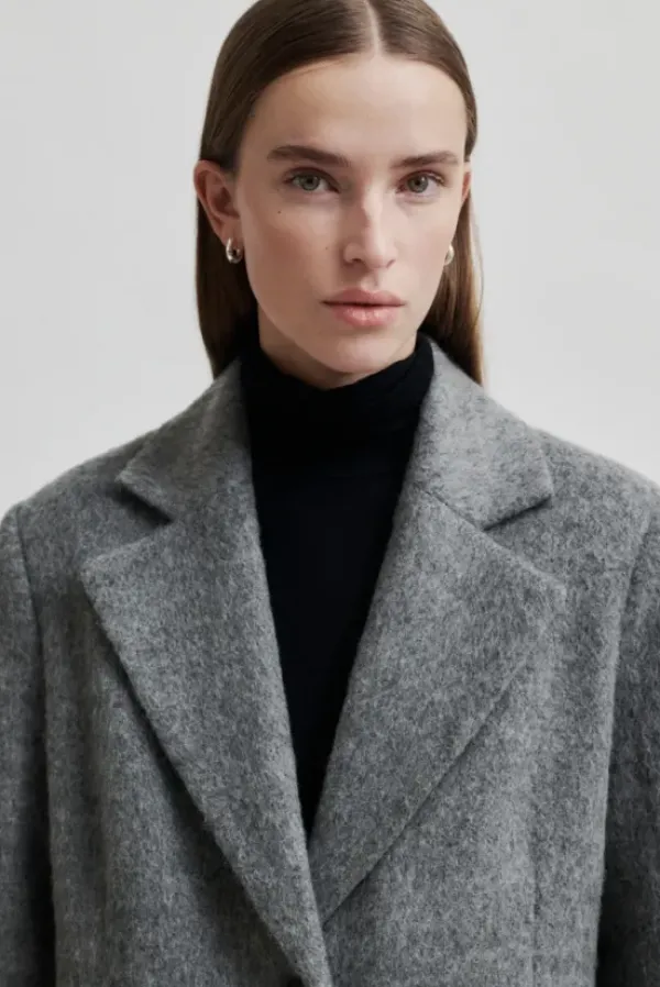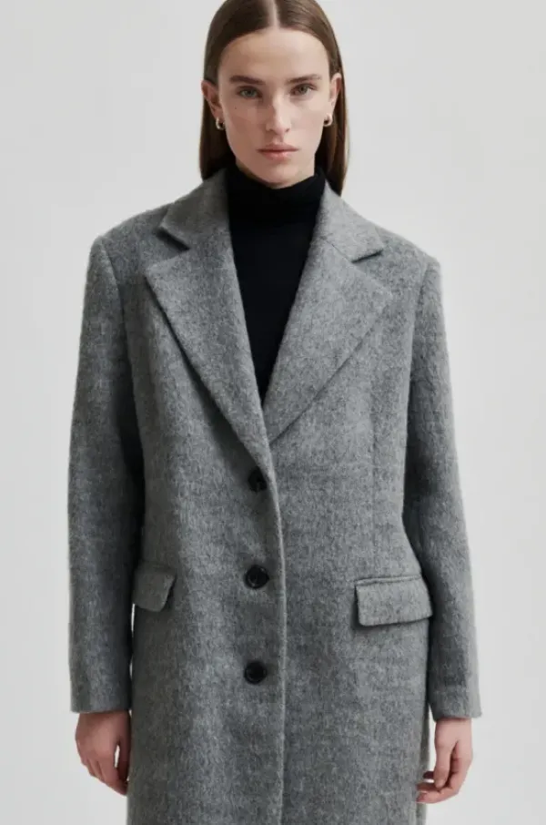 Second Femalen kaunis, klassinen villakangastakki pehmeää villasekoitetta. Kiva, eläväinen meleerattu sävy. Pituus polven alle.