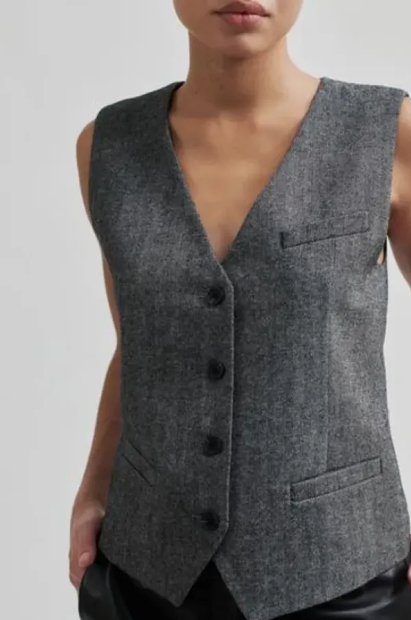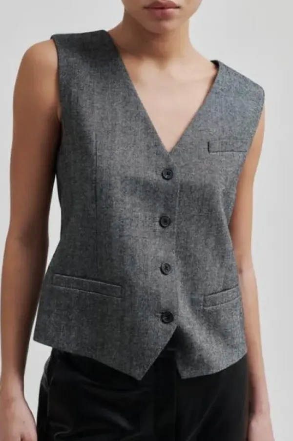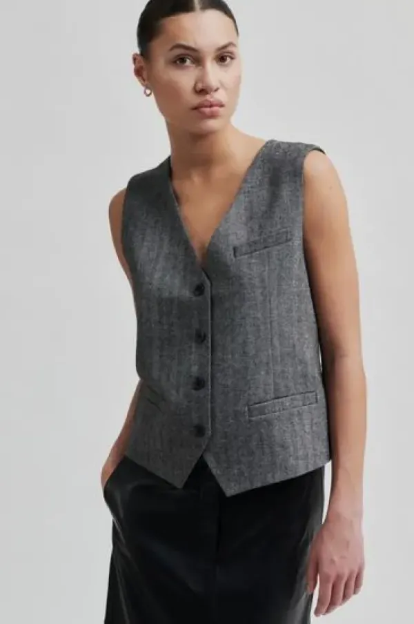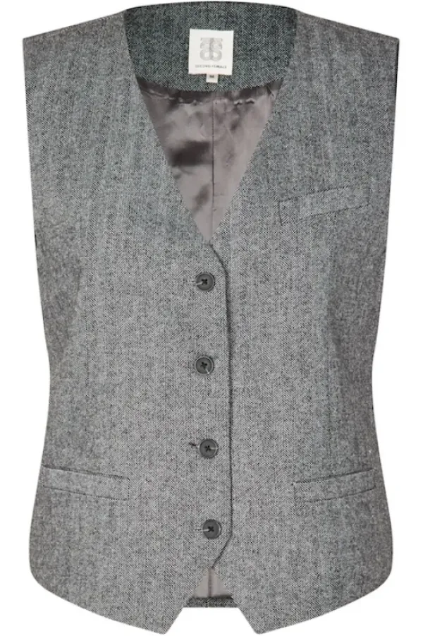 Second Femalen tyylikäs liivi kalanruotokuviolla. Klassinen malli pikkutaskuilla ja selän puolen tampilla. Villasekoitetta. Vuoritettu.