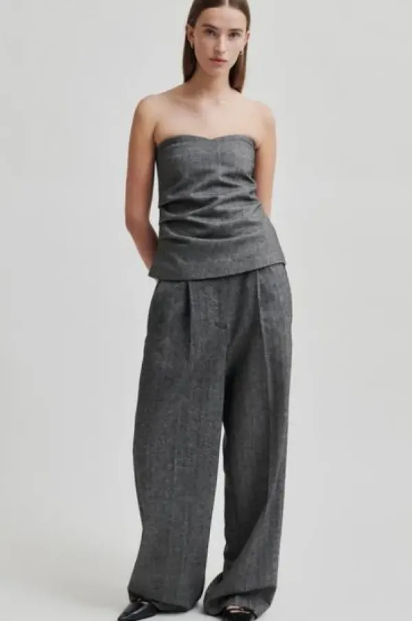 Second Femalen tyylikäs toppi kalanruotokuviolla. Takana kuminauhat ja sivulla vetoketju. Villasekoitetta. Vuoritettu.