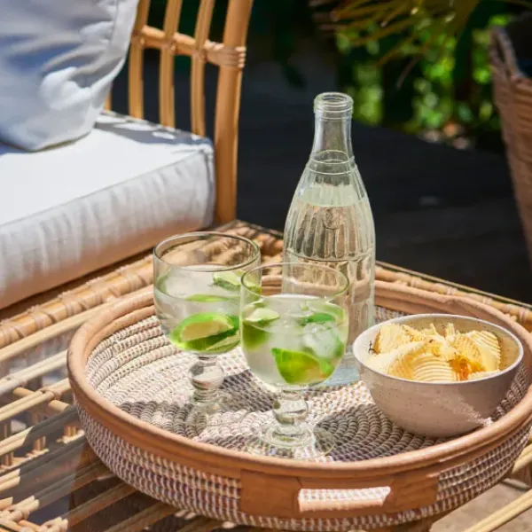Tanskalaisen Sika-Designin Senegalissa käsityönä valmistettu tarjotin. Materiaalina ruoko, josta tarjottimet on valmistettu perinteisillä käsityömenetelmillä punoen.