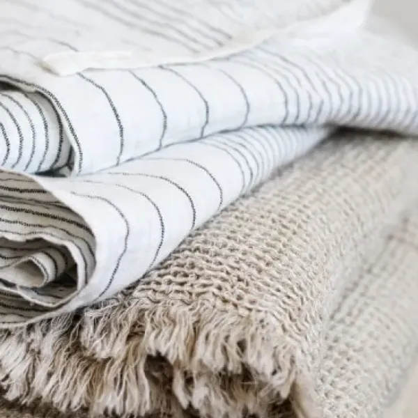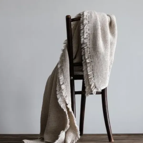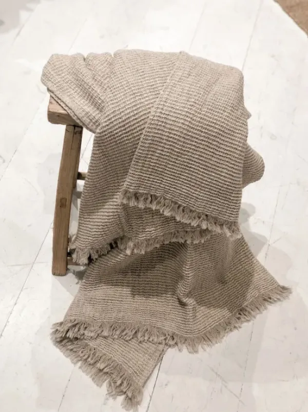 Tell Me Moren puuvilla-pellava vohvelikankainen torkkupeitto. Värinä kaunis hiekka. Peiton koko 140x200cm.